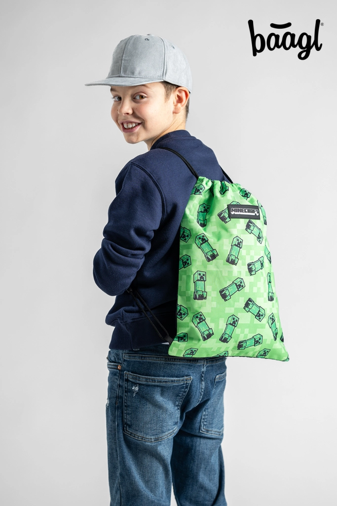 Zaļš pikseļu raksts un Creeper motīvs piesaista uzmanību no pirmā skatiena un lieliski saskan kā komplekts gan skolai, gan pulciņiem.