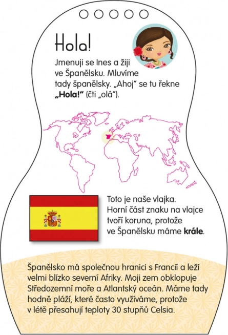 Grāmata Ģērbjam spāņu lelles INES apvieno radošo darbošanos, spēli un pasaules iepazīšanu. Mazie mākslinieki var izkrāsot tērpus un aksesuārus, ko iedvesmojusi spāņu mode, un vienlaikus atklāt Spānijas bērnu paražas, tradīcijas un ikdienas dzīvi. Pateicoties uzlīmēm, ir viegli veidot savus modeļus, kombinēt stilus un attīstīt fantāziju.