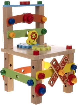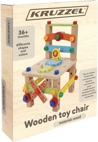 Krēsls tiek piegādāts detaļās, kuras var viegli salikt ar komplektā iekļauto instrumentu palīdzību. Bērni var izveidot savu projektu.