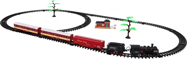 Šis iespaidīgais vilciena modelis rada perfektu īsta dzelzceļa atmosfēru ar saviem dūmu efektiem un apgaismoto lokomotīvi. Trase ar aptuveniem izmēriem 78 cm x 156 cm piedāvā elipsveida apli ar divām pārslēgšanām.