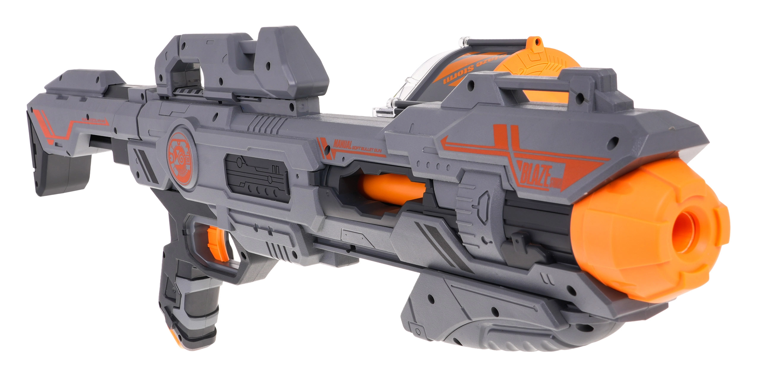 Iepazīstinām ar Mega Blaze Storm pelēko šauteni — ideāla izvēle bērniem un jauniešiem, kuri meklē izklaidi sci‑fi stilā. Šī rotaļlieta ir aprīkota ar 40 lodītēm, kuras viegli ievietot sānu aptverē. Šautene piedāvā:
