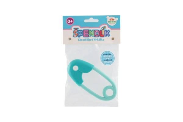Turkīza grabulīte ar lodītēm iekšpusē maigi čabinās, piesaistot un izklaidējot jūsu bērnu.
