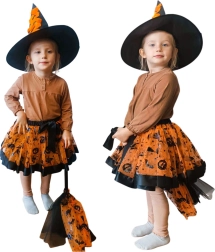 Šis 3 daļu raganas kostīms pārvērtīs ikvienu bērnu par mazu burvi. Vieglie tutu svārki ar elastīgu jostasvietu ir ērti ilgai valkāšanai, augstā smailā cepure piešķir tēlam burvīgu noskaņu, bet slotas kāts parūpējas par tēla noslēgumu. Oranžā krāsa ar melniem sikspārņu, ķirbju un zvaigžņu motīviem ir koša un fotogēniska.
