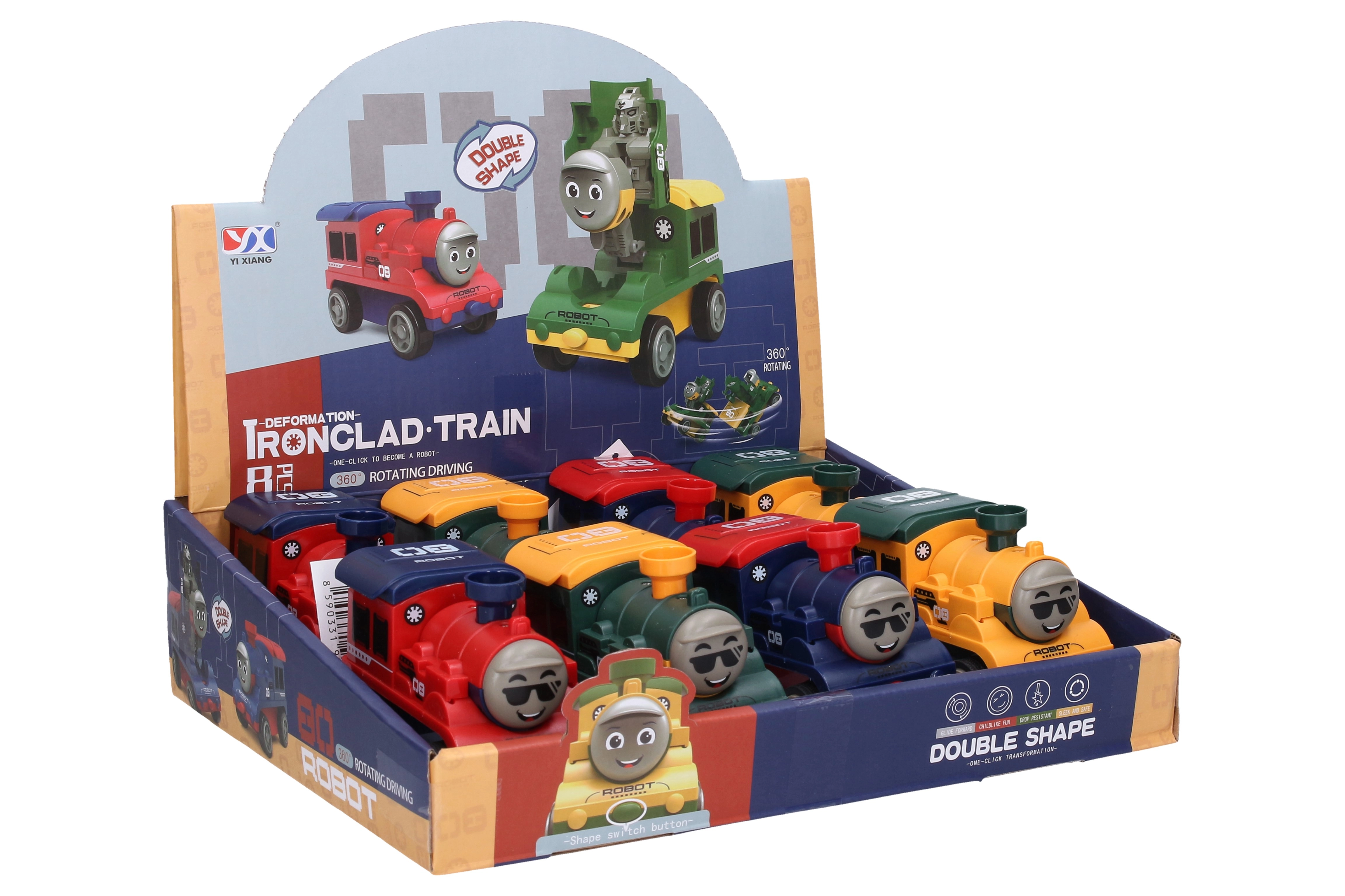 Izklaidējoša rotaļlieta bērniem – autorobota vilcieniņš 11 cm garumā, kas apvieno vilcienu un robotu pasaules. Pieejamas 4 krāsu versijas (sarkana, dzeltena, zila, zaļa) un tas ir ideāli piemērots radošai spēlei un iztēles attīstīšanai.