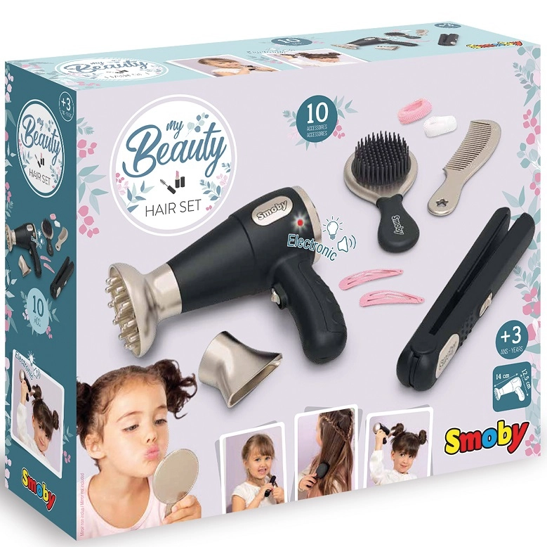 Bērnu friziera komplekts Beauty no zīmola SMOBY ir lieliska izvēle mazajiem stilistiem, kuri mīl frizūras un radošas spēles. Pateicoties reālistiskām detaļām un funkcionālam rotaļu fēnam ar gaismu un skaņu, bērni izjutīs īsta salona atmosfēru. Bagātīgais piederumu klāsts ļauj veidot oriģinālus lookus gan lellēm, gan ģimenes locekļiem.