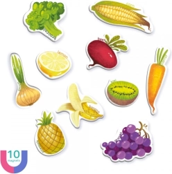 Atklājiet mācīšanās caur spēli burvību ar magnētisko spēli Augļi. Šī spēle piedāvā unikālu veidu, kā apgūt biežāk sastopamo augļu un dārzeņu angļu nosaukumus. Viss, kas nepieciešams, ir metāla virsma, pie kuras magnēti stingri turas.
