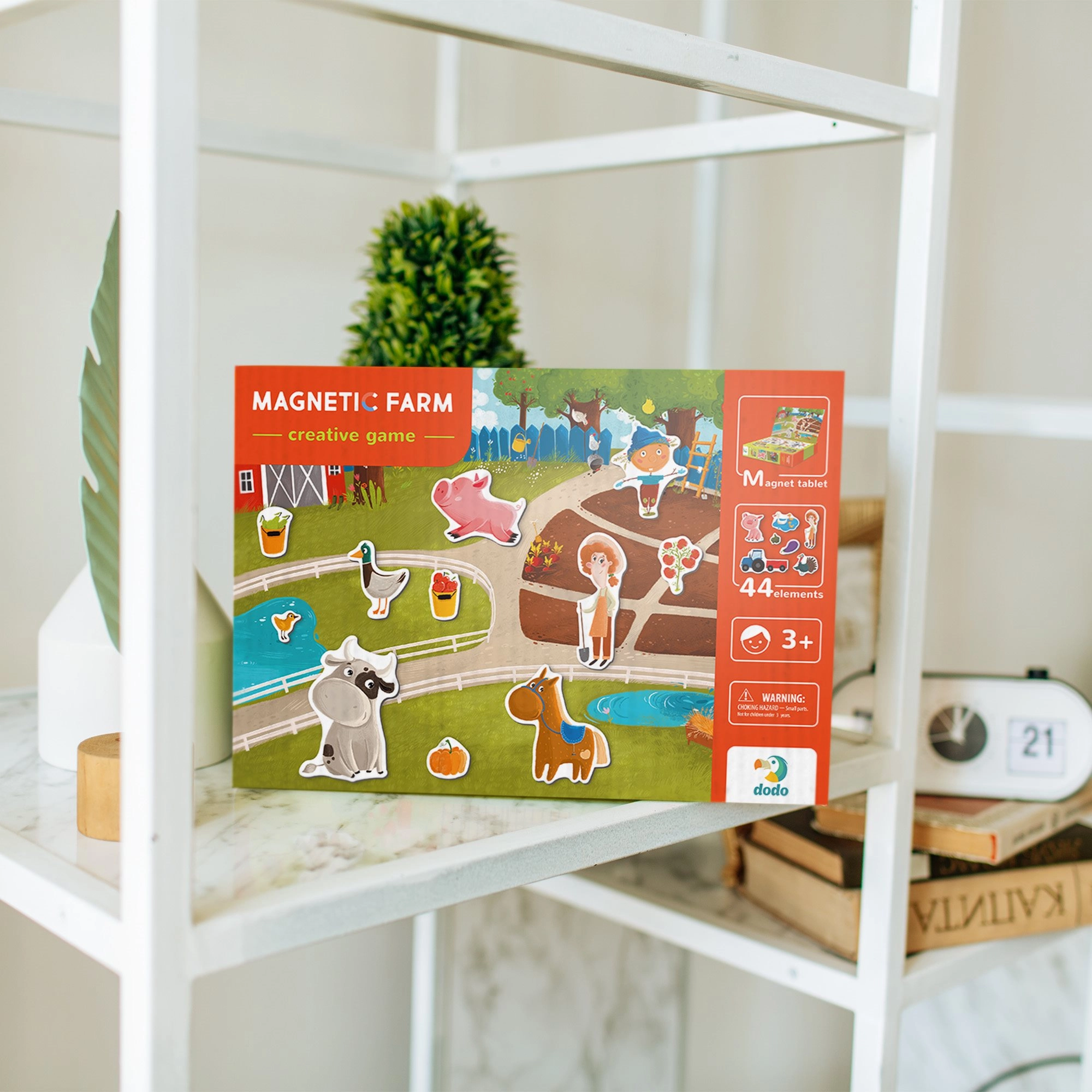 Dodo magnētiskā spēle “Ferma” ir lieliska izvēle mazajiem pētniekiem. Bērni saliek fermas ainu, novieto dzīvniekus un priekšmetus uz magnētiskās plāksnes un veido savus stāstus. Tādējādi dabiski attīstās valodas prasmes, fantāzija un koncentrēšanās.