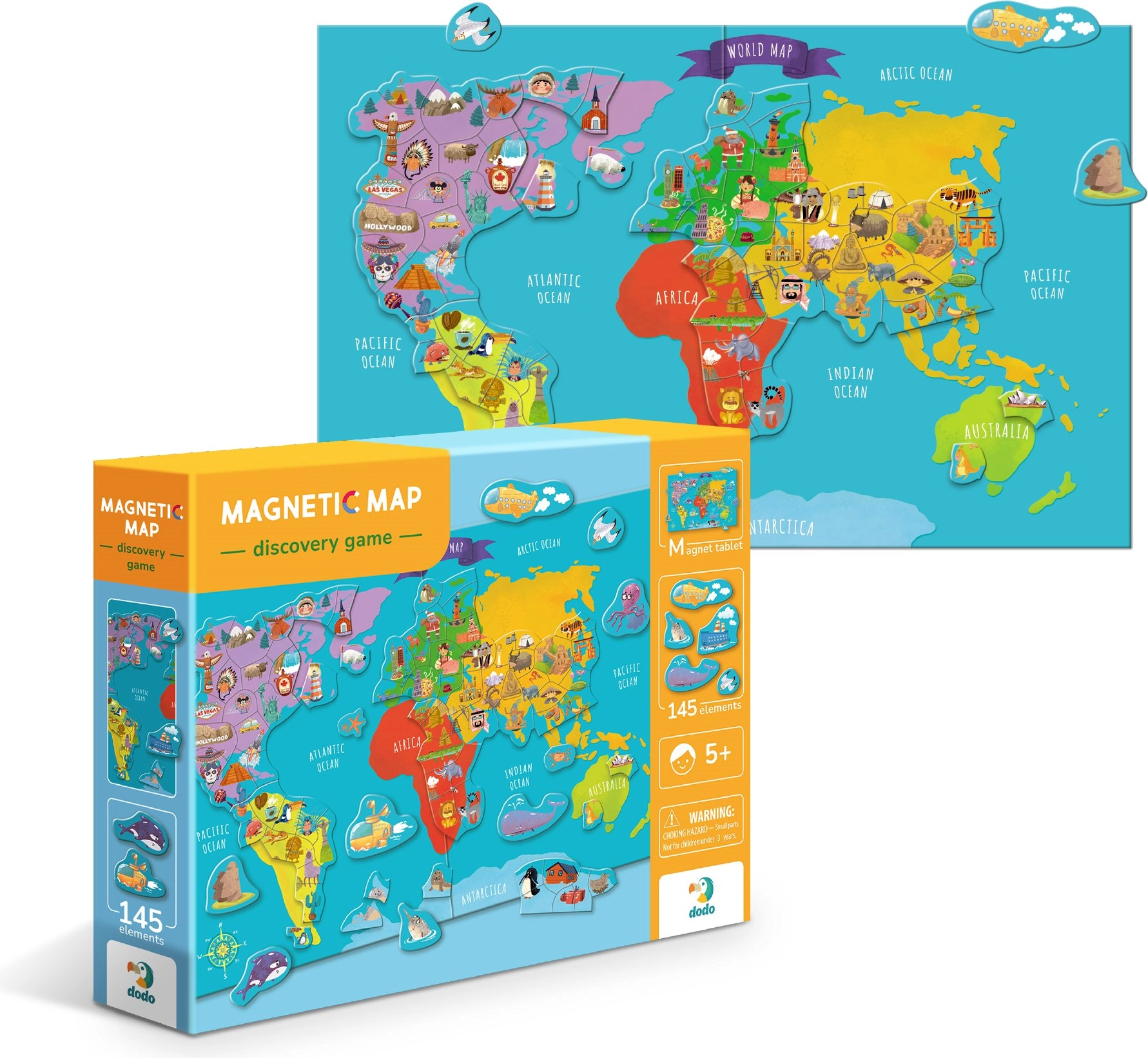 Atklājiet aizraujošu un izglītojošu veidu, kā iepazīstināt bērnus ar pasauli ap mums. Magnētiskā pasaules karte ietver 145 detaļas, kuras viegli piestiprināt pie magnētiskās pamatnes, veidojot pilnīgu pasaules attēlu.