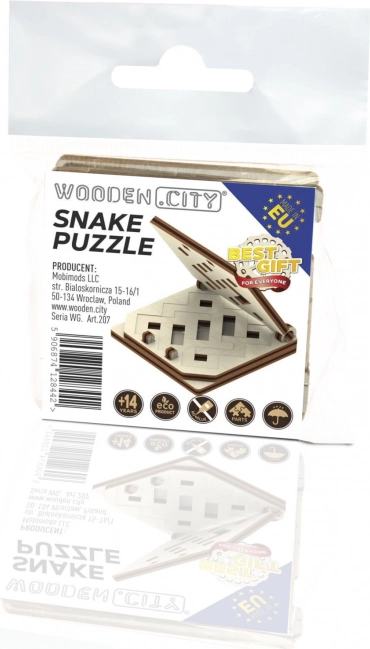 Atklājiet izklaidējošu un gudru koka 3D puzli, kas trenē gan loģiku, gan iztēli. Salieciet populāro spēli Snake no 17 detaļām un mēģiniet to ievietot noteiktajā vietā uz pamatnes. Vienkārša salikšana bez līmes, ekoloģisks izpildījums un skaists koka dizains padara šo puzli par lielisku dāvanu un stilīgu dekoru.