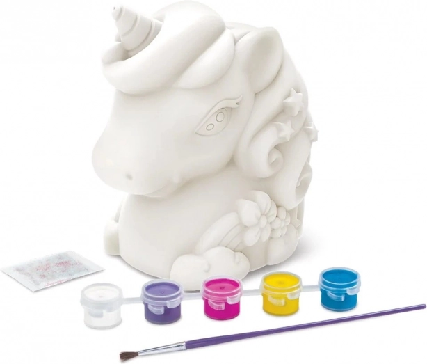 Izveidojiet savu maģisko krājkasi vienradža formā – ideāli gan mazajiem radošajiem, gan vienradžu mīļotājiem. Komplektā ir viss nepieciešamais dekorēšanai, lai jūsu krājkase būtu unikāla, radoša un vienlaikus praktiska sīku ietaupījumu glabāšanai.