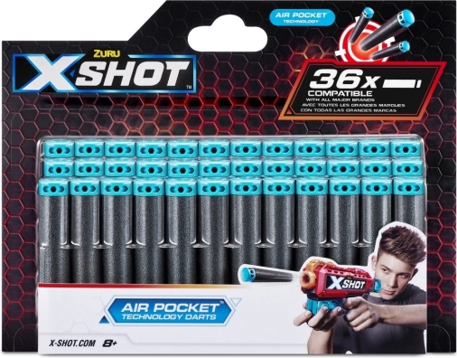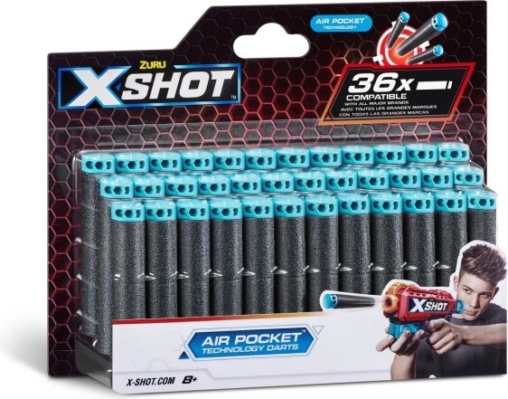 Ar X-SHOT Excel Air Pocket Technology 36 putuplasta šautriņu komplektu iegūsiet uzticamu munīcijas krājumu ilgākai un intensīvākai izklaidei. Pateicoties īpašajai Air Pocket konstrukcijai, šautriņas nodrošina stabilāku lidojumu, augstāku precizitāti un konsekventu veiktspēju.