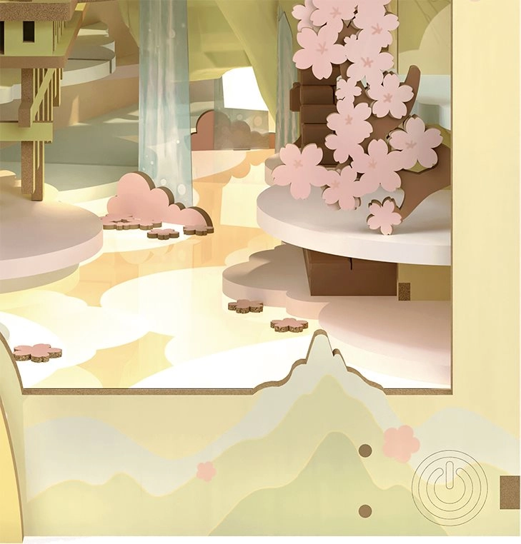 Detalizēta japāņu ainava ar vienkāršu gaismas vadību jūs ievelk stāstā. Plauktā tā izskatās kā mazs portāls uz ziedošo sakuru pasauli.