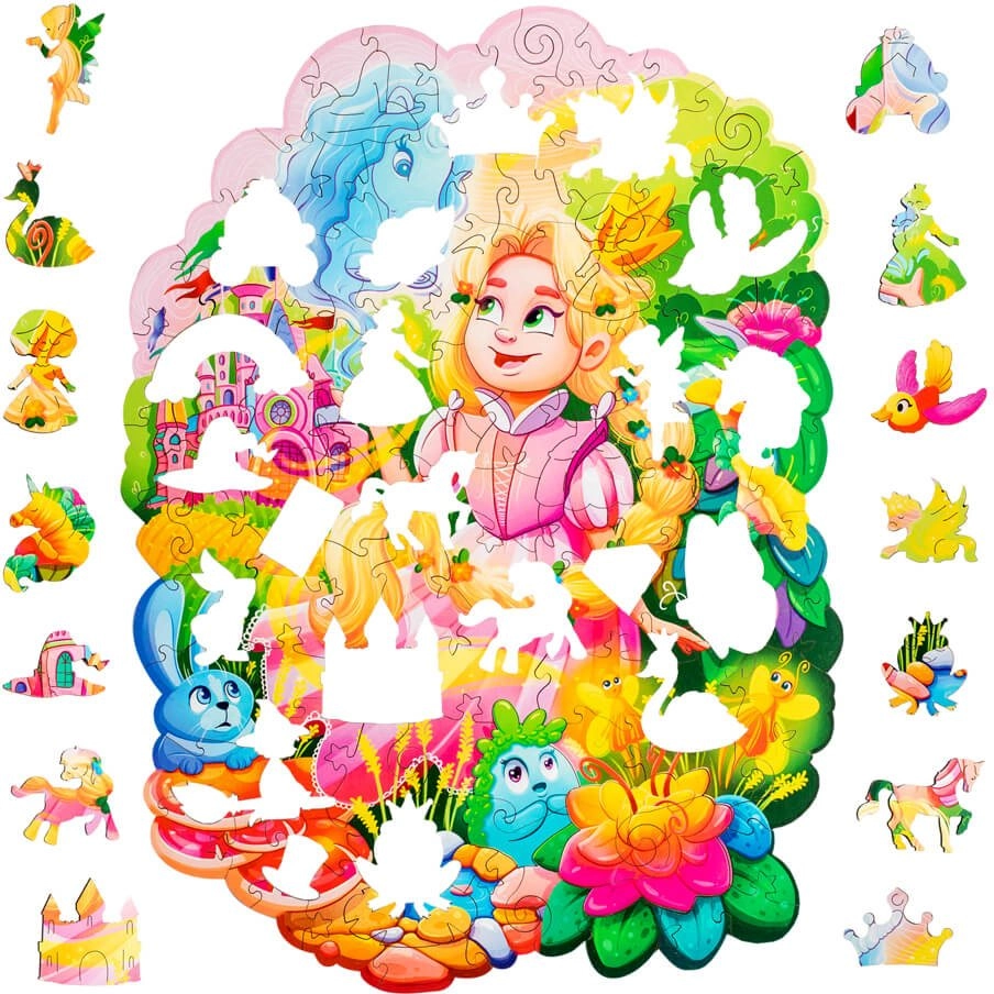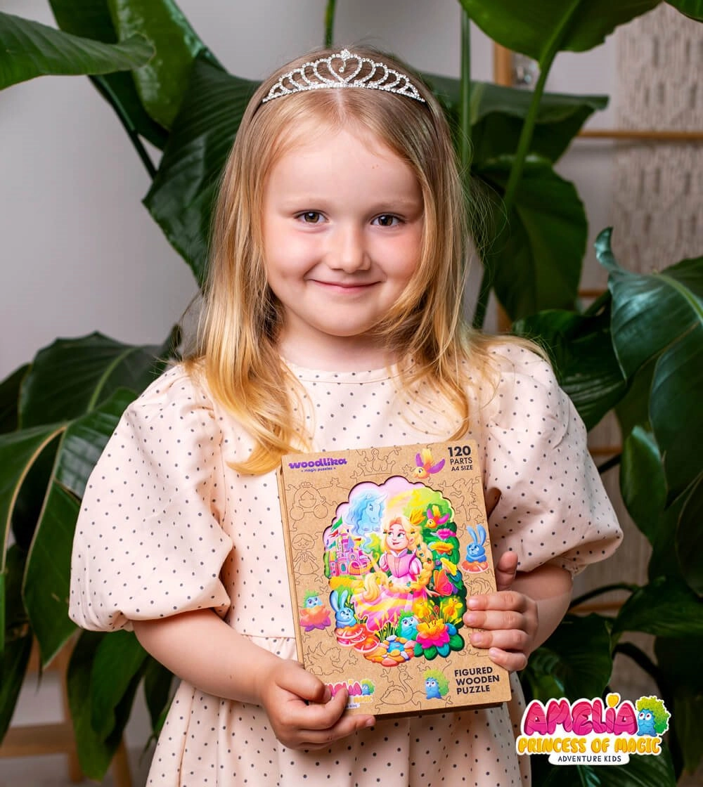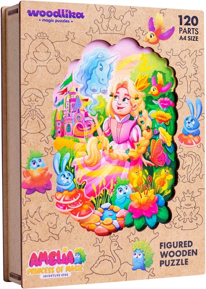 Koka puzle Woodlika Princese Amēlija piedāvā unikālu likšanas pieredzi. Dažādās gabaliņu formas, no kuriem daļa ir veidota dzīvnieku un augu formās, papildina ar lāzeru izceltās detaļas, kas skaisti atdzīvina motīvu. Pateicoties kvalitatīvam dižskābarža kokam, gabaliņi ir stingri, izturīgi un patīkami pieskārienam.
