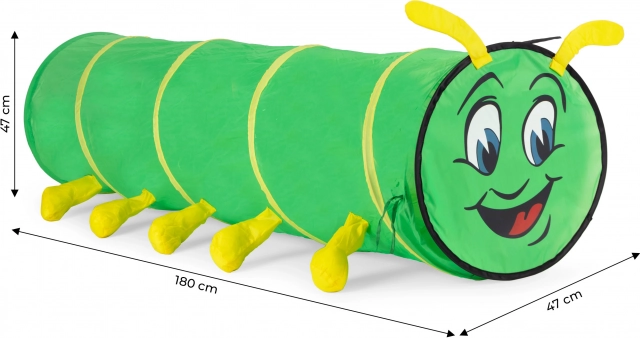 Burvīgais kāpura tunelis veicina kustību, motoriku un iztēli. Bērni var līst cauri, slēpties un radīt savus piedzīvojumus – tas viss drošā un patīkamā vidē.