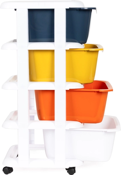 Mobilais ModernHome organizētājs piedāvā praktisku un daudzpusīgu risinājumu dažādu priekšmetu uzglabāšanai. Tas ir ideāls rotaļlietu glabāšanai bērnistabā vai kosmētikas uzglabāšanai vannas istabā. Tas izgatavots no izturīga plastmasas materiāla, kas nodrošina ilgu kalpošanas laiku, un tā baltais rāmis piešķir mūsdienīgu izskatu.