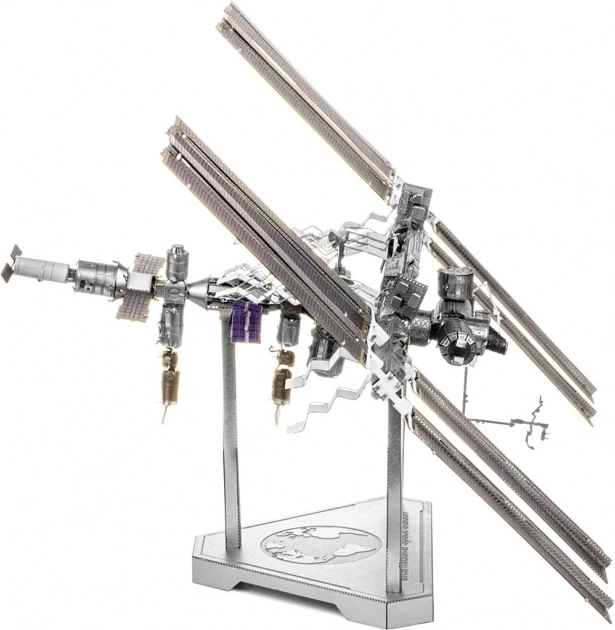 Šis reālistiskais 3D metāla modelis ISS izceļas ar smalki izstrādātiem paneļiem un moduļiem, kas uzticami ataino īstās stacijas struktūru. Pateicoties detalizētai lāzergravēšanai un stabilam statīvam, tas kļūs par elegantu akcentu jūsu interjerā – mājās, birojā vai skolā.