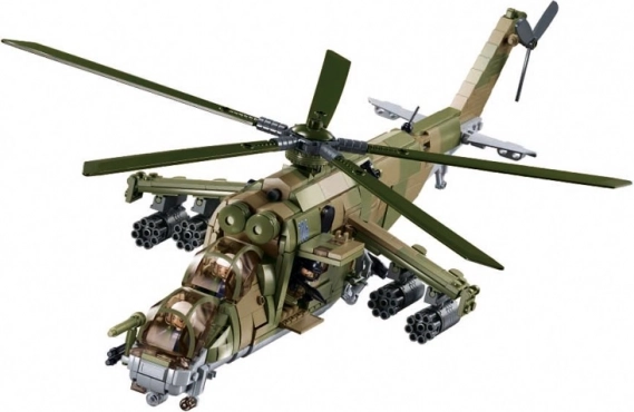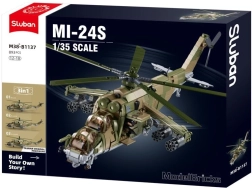 Sluban Mi‑24S komplekts sniedz autentisku būvēšanas un spēlēšanās pieredzi. Izturīgais modelis maskēšanās krāsās piedāvā daudz detaļu – no grozāma galvenā un astes rotora līdz stiklotai kabīnei un bruņojumam, tostarp raķešu blokiem un lielgabalam. Ar 3 minifigūriņām var viegli veidot dinamiskas misijas un scenārijus.