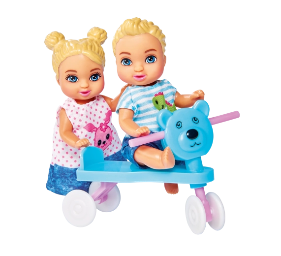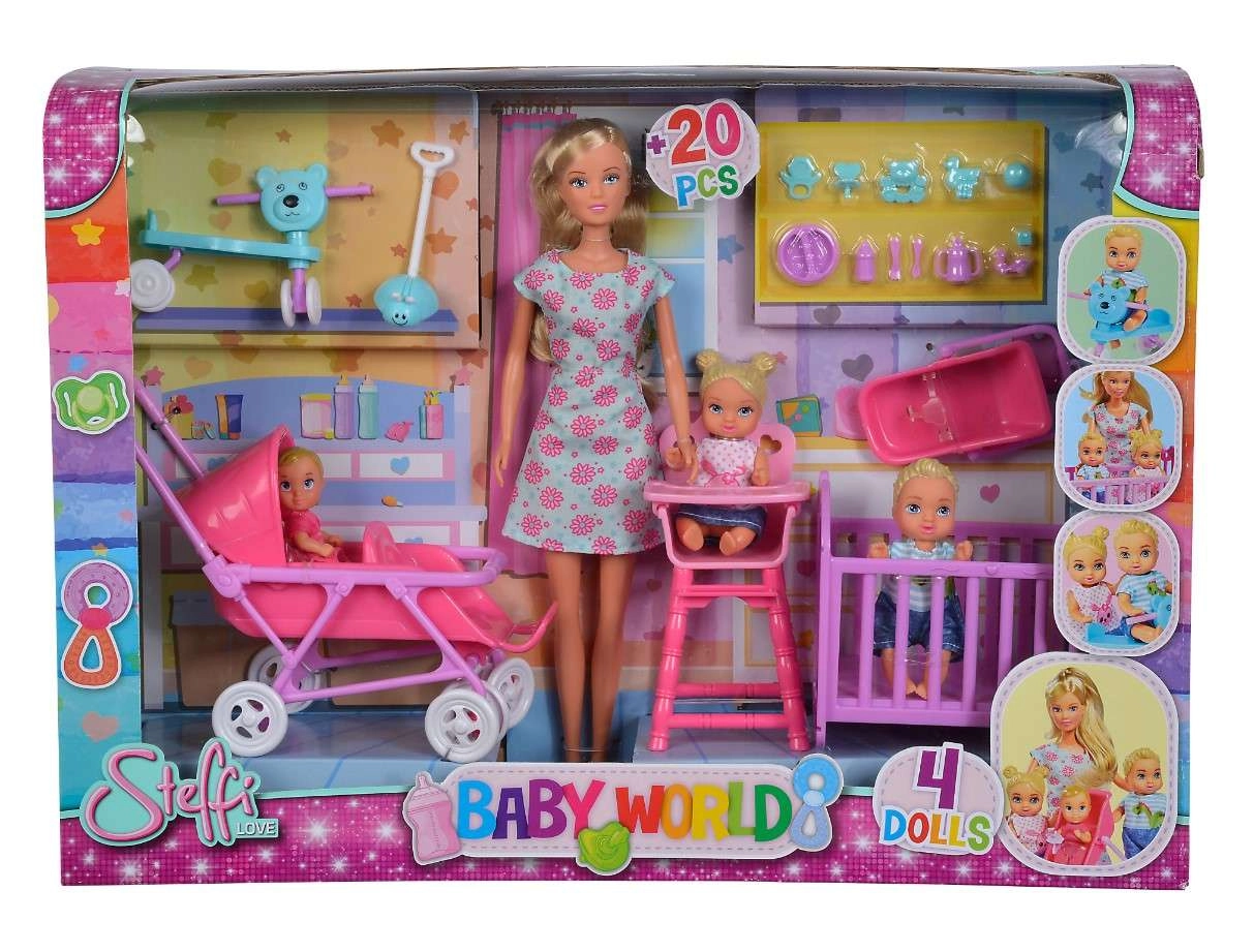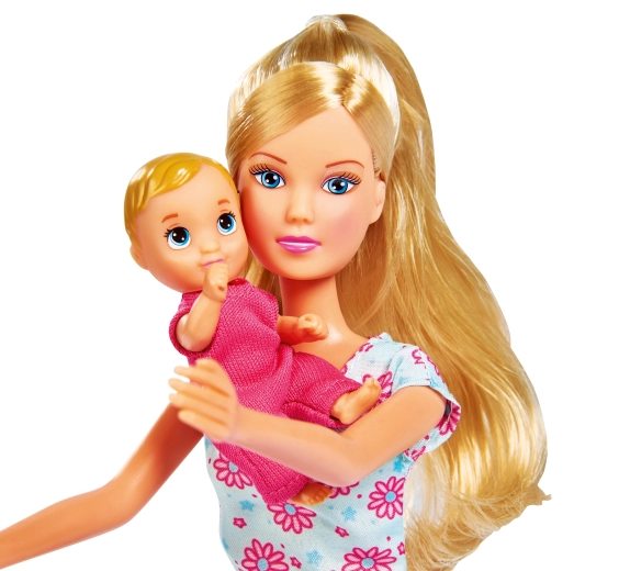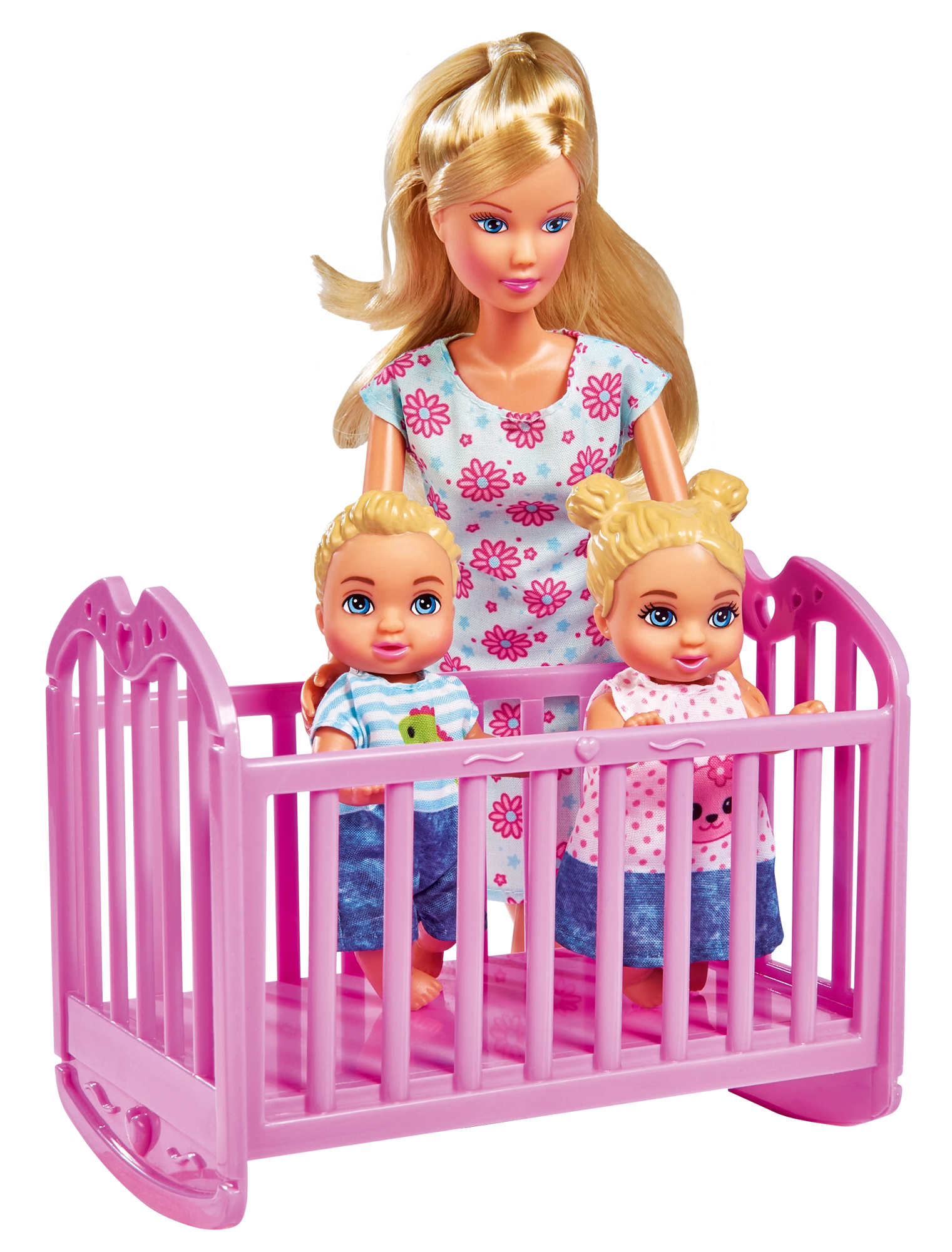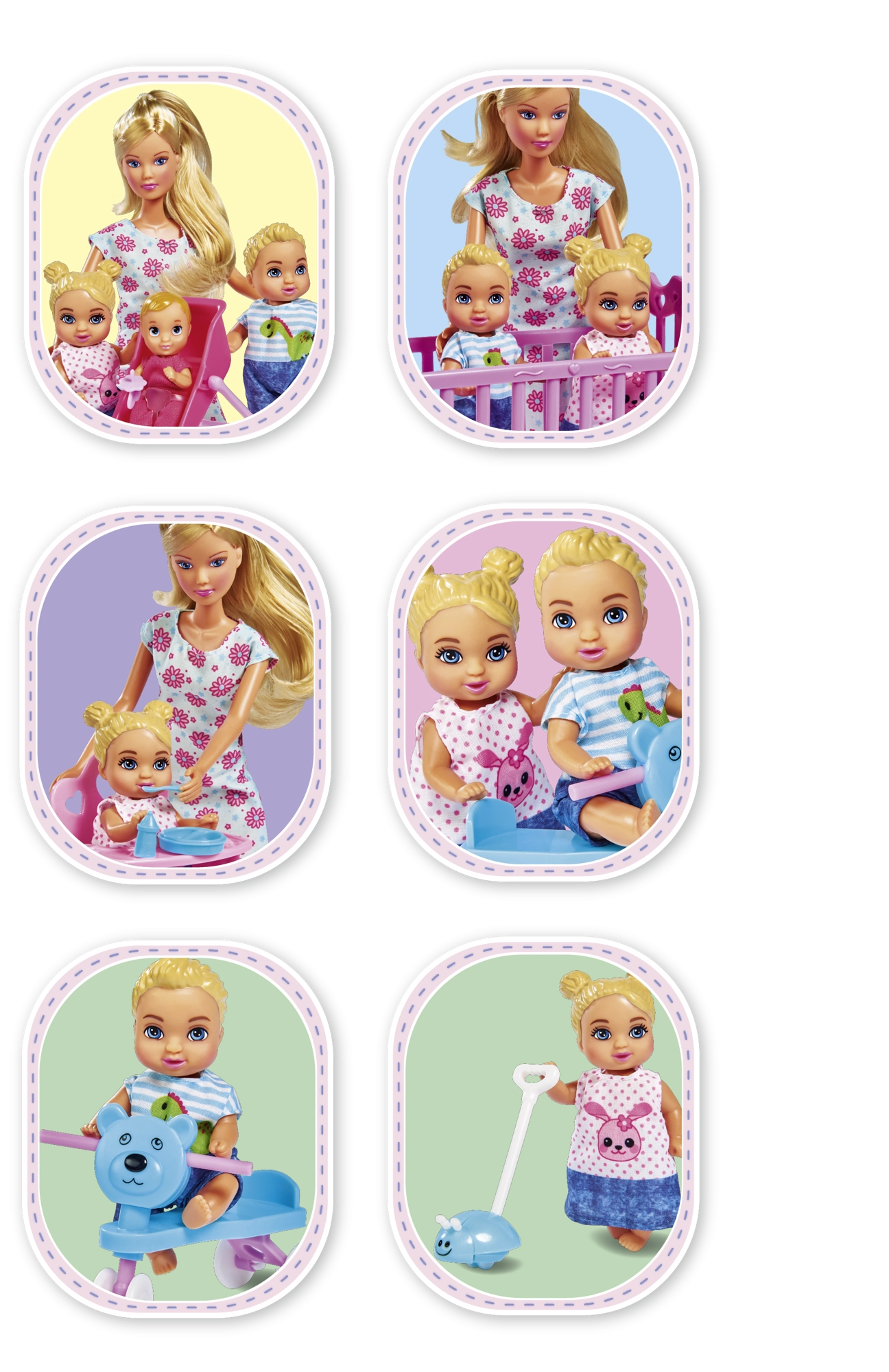Iecienītā lelle STEFFI šoreiz ir gādīga māmiņa ar trim mazuļiem un bagātīgu bērnistabas aprīkojumu. Pateicoties 2 vienā ratiņiem (dziļā kulba + sporta versija), gultiņai, barošanas krēsliņam un praktiskām sīklietām, bērni var izspēlēt visas ikdienas situācijas – no barošanas un iemidzināšanas līdz pat izbraucieniem.
