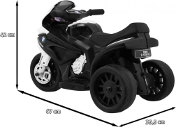 Stilīgs bērnu elektriskais motocikls, iedvesmots no BMW S 1000 RR, piedāvā drošu braukšanu uz trim riteņiem, reālistisku LED apgaismojumu un skaņas stūrē. Vieglā un stabilā konstrukcija ar ekoādas sēdekli iepriecinās gan mazos braucējus, gan vecākus.