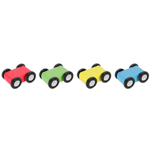 Komplektā iekļautas 4 mazas mašīnītes, kuru konstrukcija rosina bērnu iztēli un radošumu. Šī trase ir lieliska ne tikai jautrībai, bet arī sīkās motorikas un roku prasmes attīstīšanai mazākiem bērniem.