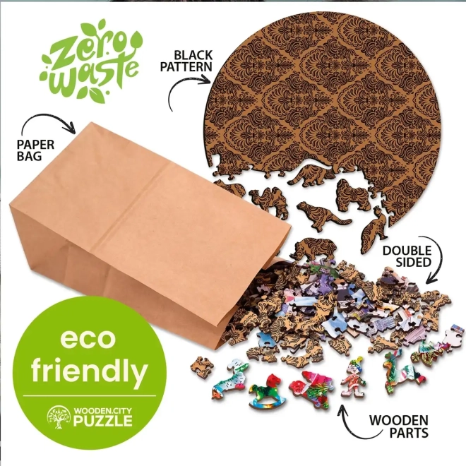 Iepakojumā iekļauta arī atsevišķa parauga lapa ērtākai salikšanai. Zīmols WOODEN CITY domā par dabu – puzle ir 100% EKO Friendly, iepakota papīra maisiņā un kastītē bez plastmasas. Lieliska dāvana jebkurai reizei un skaista dekorācija pēc salikšanas.