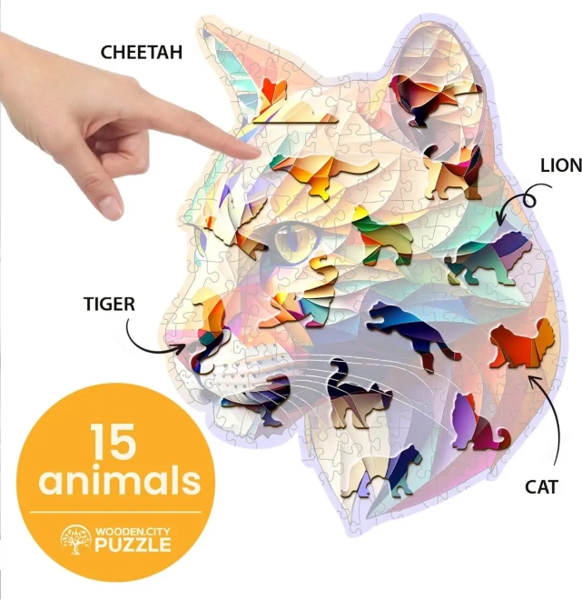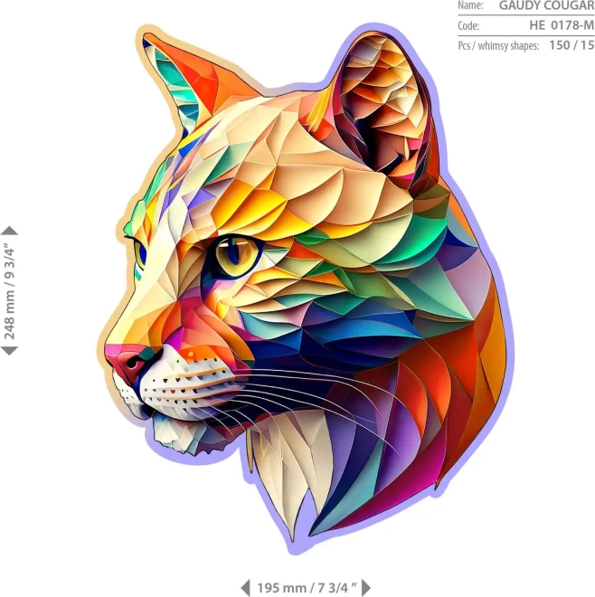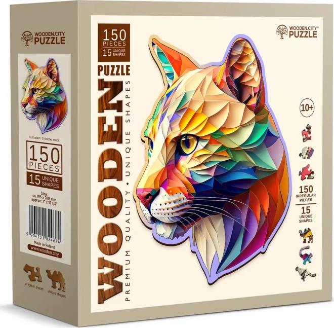 Atklājiet izklaidi ar stilīgo koka puzli WOODEN CITY Krāsaina puma ar 150 gabaliņiem. Pateicoties unikāli veidotiem gabaliņiem dzīvnieku formās, precīzai lāzera apstrādei un ekoloģiskam iepakojumam bez plastmasas, iegūsiet skaistu, izturīgu un izaicinošāku galvaslauzi pieaugušajiem un vecākiem bērniem.