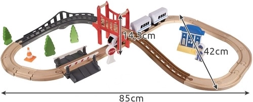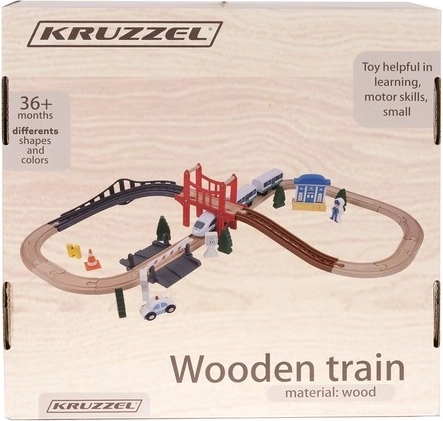 Šī koka vilciena sliežu trase ir ideāls risinājums bērnu radošuma un iztēles veicināšanai. Tā ir veidota tā, lai bērni varētu iegrimt dzelzceļa izklaides pasaulē mājās vai ārā. Komplektā ir kopumā 37 precīzi izstrādāti elementi, tostarp tilts un ēkas, kas piešķir spēlei reālistiskus akcentus.