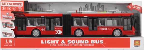Izbaudiet reālistisku braucienu ar mūsu artikulēto trolejbusu ar inerci mērogā 1:16, aprīkotu ar skaņas un gaismas efektiem. Baterijas ir iekļautas komplektā.