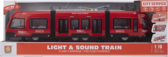 Reālistiska braukšanas pieredze bez baterijām ar šo 1:16 mēroga tramvaju. Pateicoties inerces mehānismam, pēc uzvilkšanas tas sāk kustību un turpina braukt arī pēc atlaišanas.