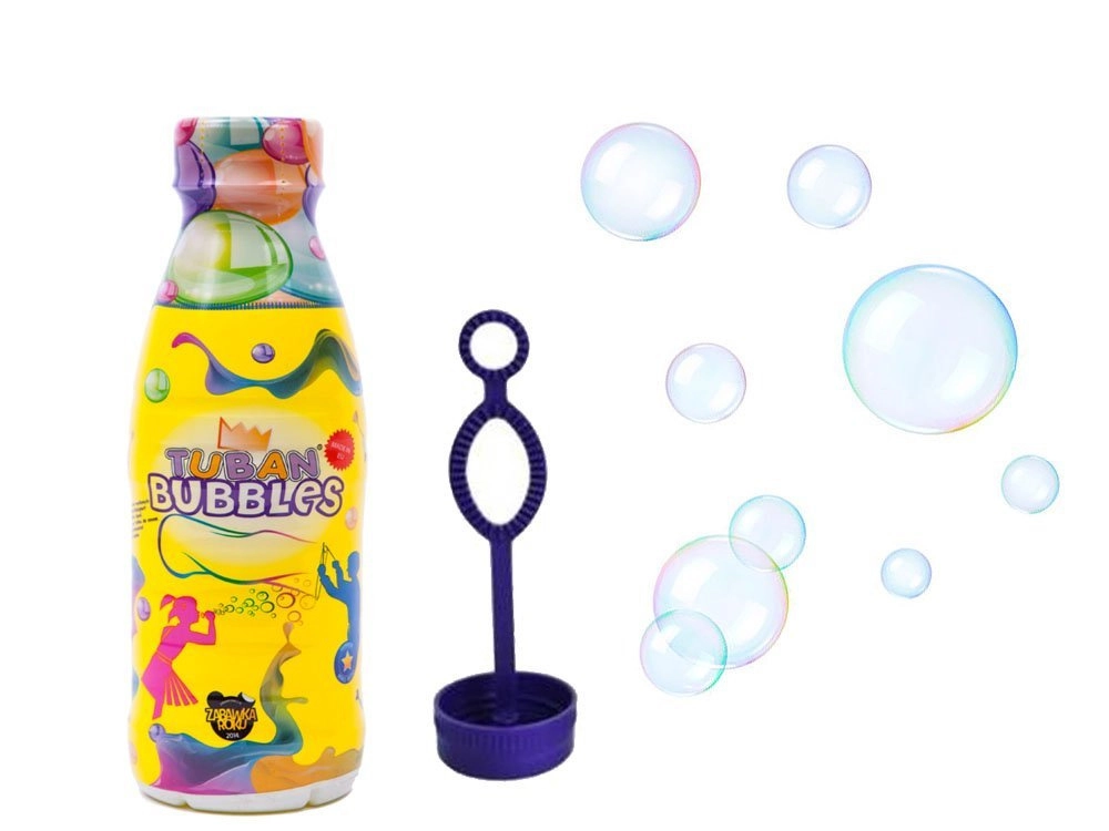 Oriģinālais TUBAN burbuļu šķidrums 250 ml iepakojumā veido lielus un izturīgus burbuļus visai ģimenei. Tas ir ideāli piemērots gan parastajiem burbuļotājiem, gan elektriskajām burbuļu mašīnām, ir viegli lietojams un drošs bērniem no 3 gadu vecuma (pieaugušo uzraudzībā). Pirms lietošanas pietiek maigi samaisīt un uzglabāt istabas temperatūrā.