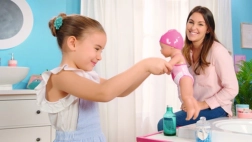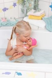 Viegls, ūdensizturīgs lelles korpuss ir ideāli piemērots vannai un baseinam – bērns vēro, kā lellei peld un tā turas uz ūdens virsmas.