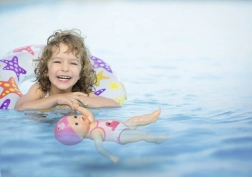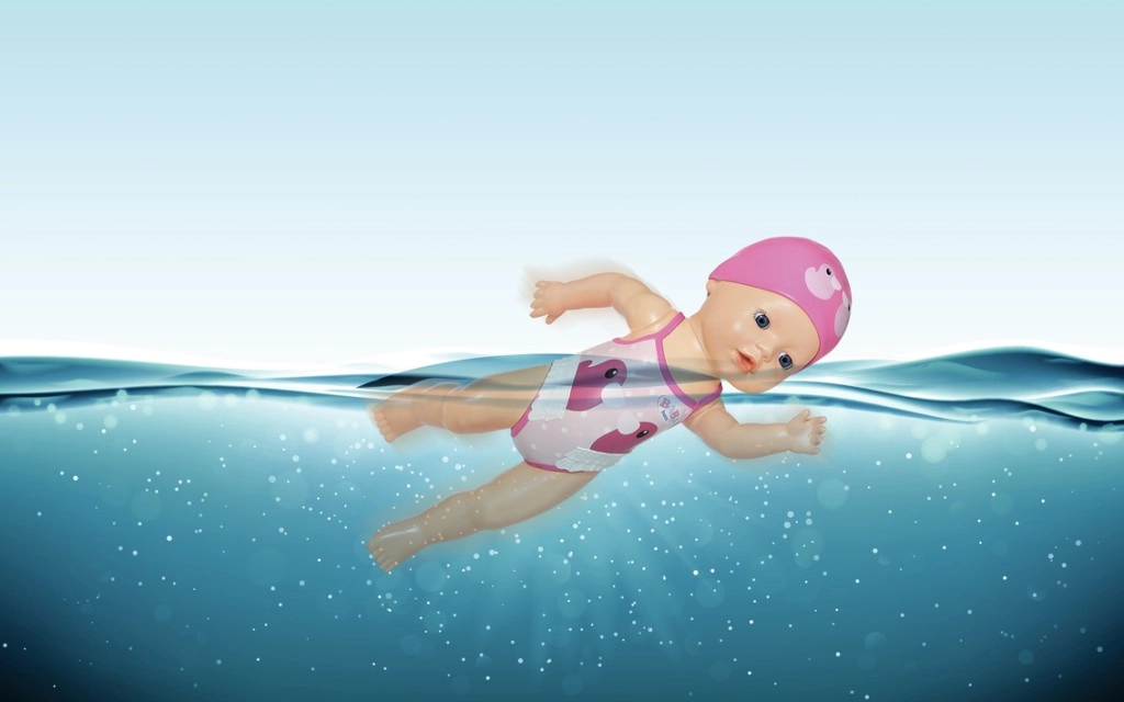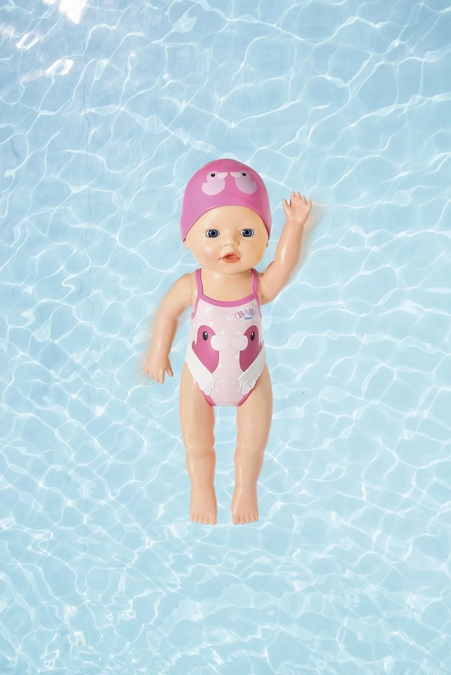 Mīlīgā peldlelle BABY born My First Swim Girl 30 cm izmērā ir radīta spēlēm vannā un baseinā. Pateicoties ūdensizturīgajam izpildījumam un vieglajam ķermenim, tā peld un kustas ūdenī, veicina bērnu iztēli un sīko motoriku no 12 mēnešu vecuma. Krāsainie peldkostīmi un peldcepurīte padara to par ideālu draudzeni ikdienas peldes priekiem.
