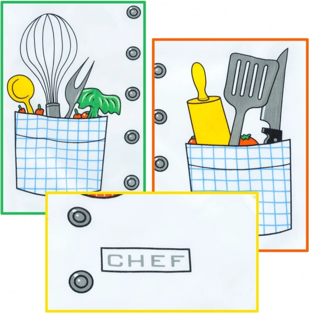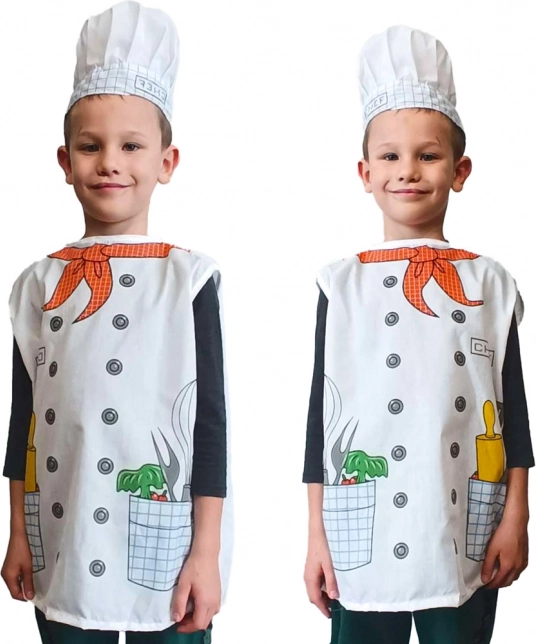Kostīms ietver baltu priekšautu un pavāra cepuri, lai jūsu bērns justos kā īsts pavārs.