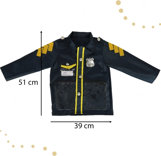 Kostīms ietver mēteli un cepuri ar autentiskām detaļām, piemēram, nozīmīti un citus piederumus, kas imitē īstu policijas formu.