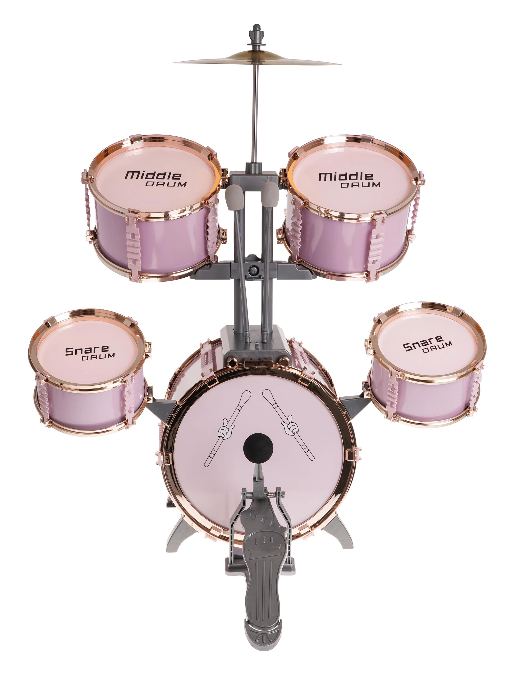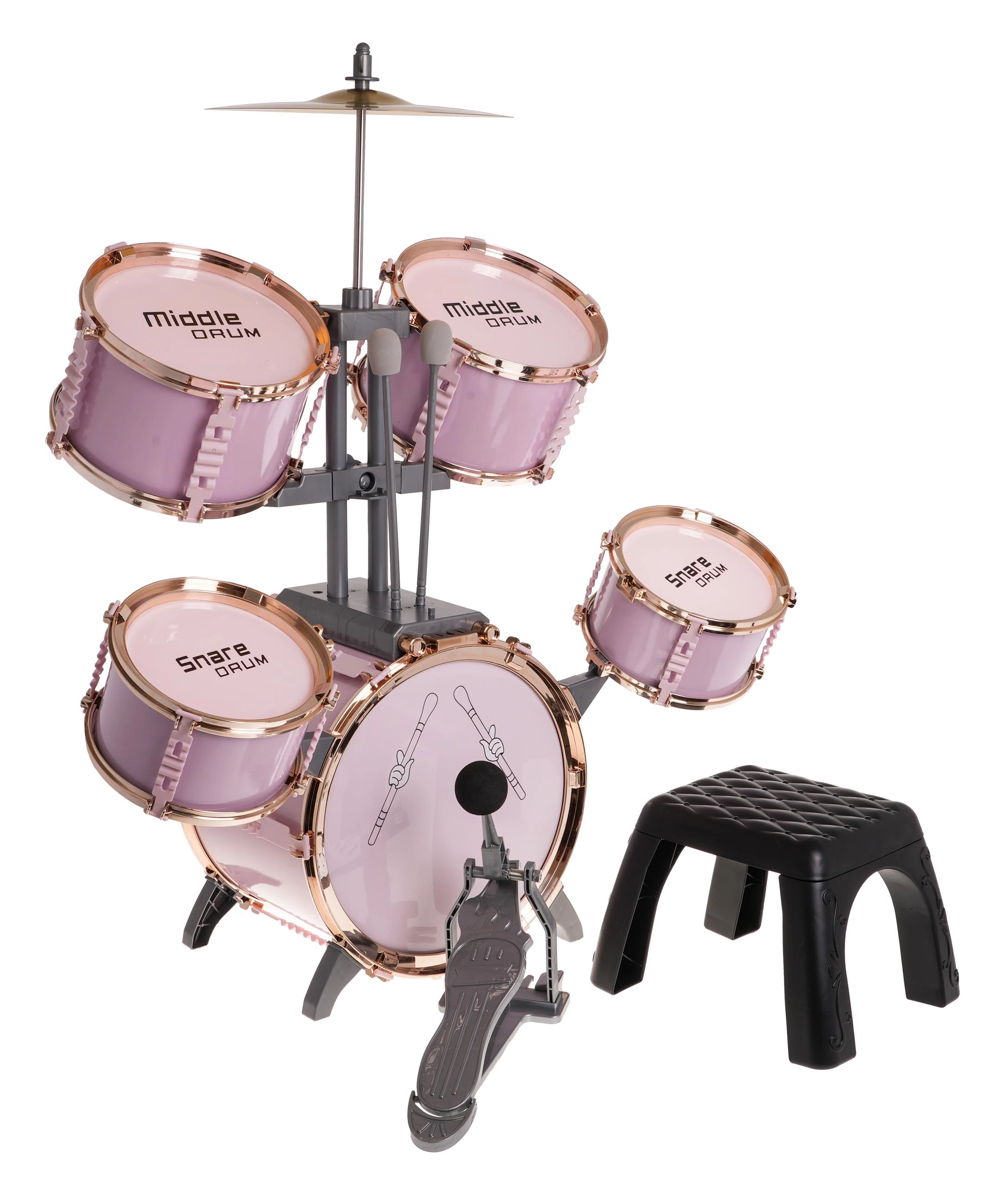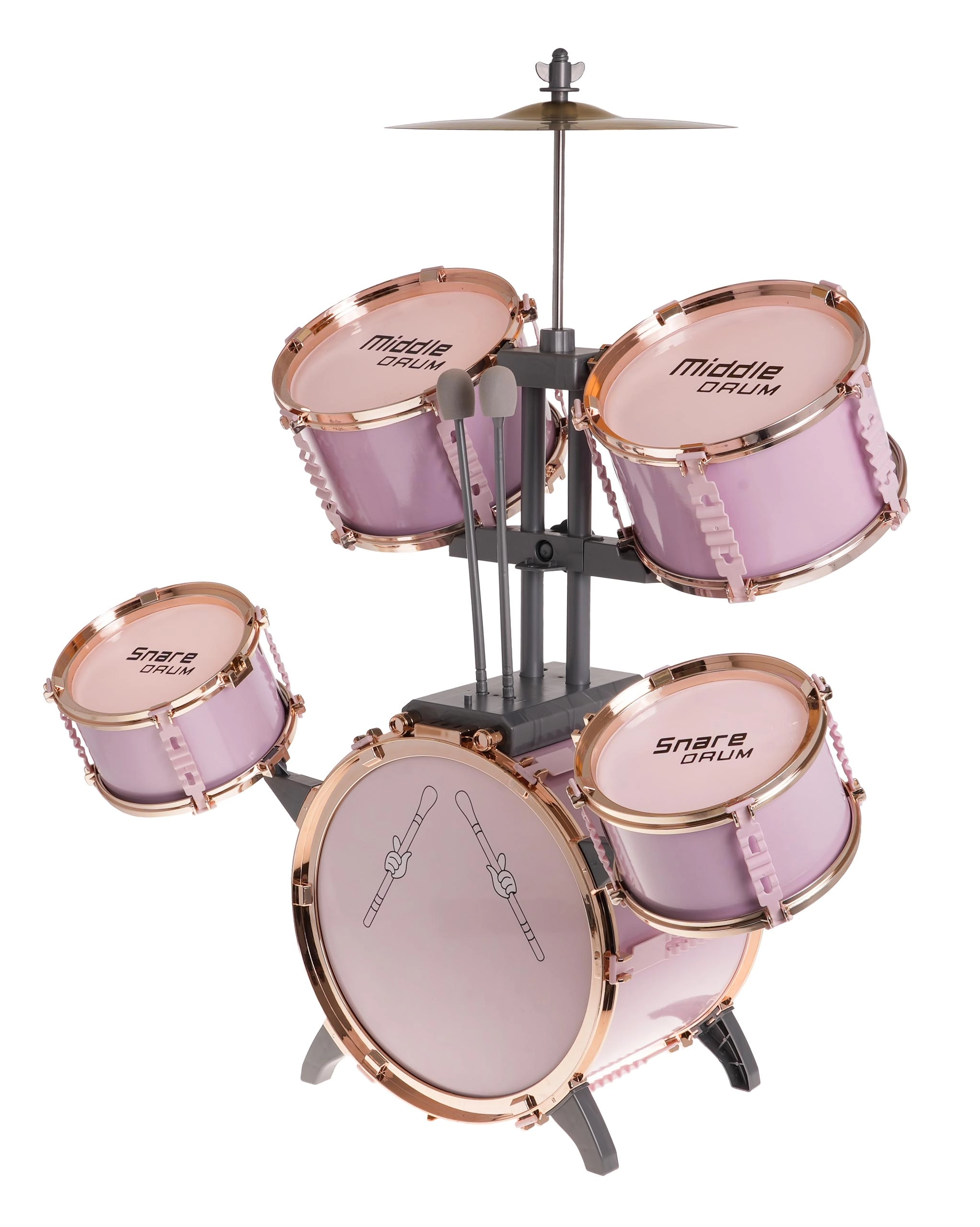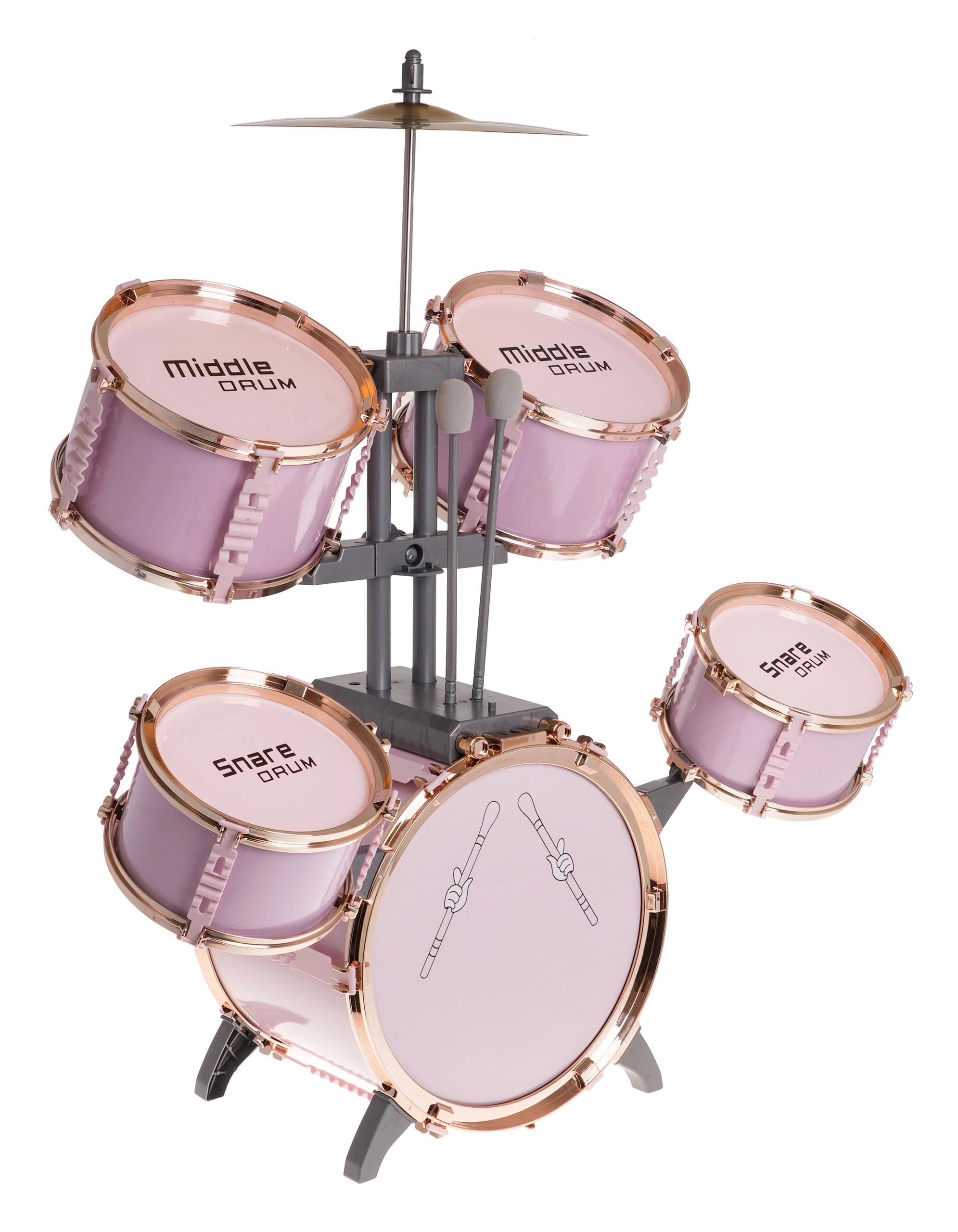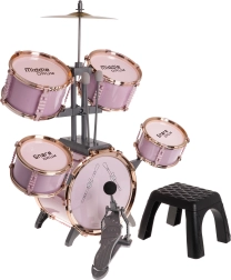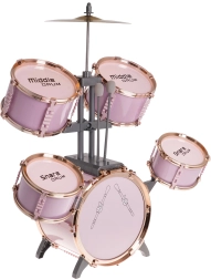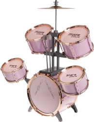 Šis stilīgais rozā bungu komplekts ir viegls, stabils un radīts tieši mazajiem bundziniekiem. Pateicoties marķētajām bungām un pārskatāmam izvietojumam, bērni viegli apgūst ritma un tehnikas pamatus. Metāla šķīvis un lielās bungas pedālis pastiprina reālistisku spēles sajūtu.