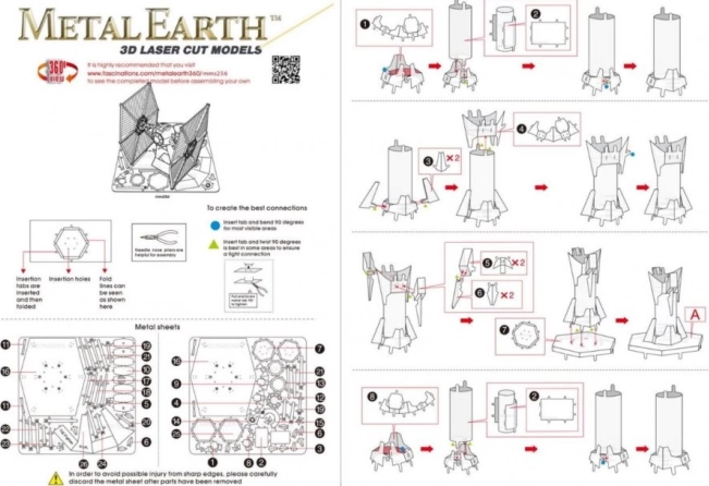 Atklājiet METAL EARTH metāla 3D pužļu burvību un salieciet ikonisko TIE Fighter no STAR WARS sāgas. No plānām tērauda loksnēm ar lāzerā gravētiem sīkumiem top reālistiska miniatūra, kas izcelsies mājās, birojā vai jebkura fana kolekcijā.