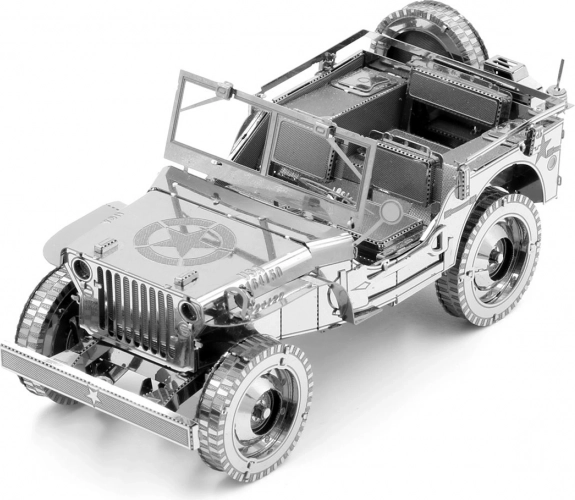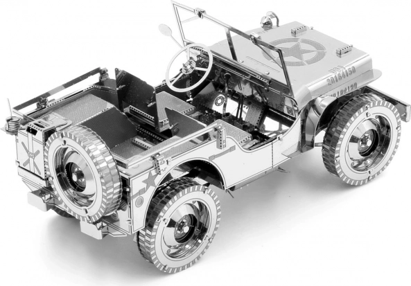 METAL EARTH ICONX piedāvā izstrādātu JEEP WILLYS MB modeli no nerūsējoša tērauda loksnēm, kas iepriecinās vēstures, militārās tehnikas un precīzu miniatūru cienītājus. Detaļas tiek savienotas bez līmes, izmantojot fiksatorus un izciļņu ieliekšanu – nepieciešama tikai pacietība, veiklas rokas un pamata instrumenti.