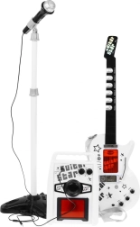 Elektriskā ģitara ar pastiprinātāju un mikrofonu nodrošina pilnvērtīgu pieredzi mazajiem mūziķiem.