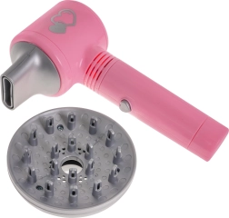 Fēns darbojas ar baterijām un piedāvā realistisku matu žāvēšanas pieredzi, pateicoties skaņas efektiem un vieglai gaisa plūsmai.