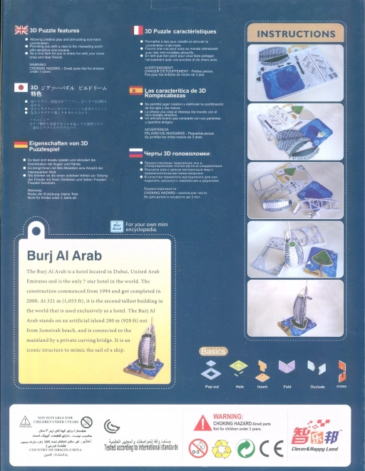 Skaidāmais komplekts 3D puzle Burj Al Arab noteikti iepriecinās katru arhitektūras cienītāju. Šis detalizēti izstrādātais 3D modelis, pazīstams kā buru kuģis, ienesīs daļiņu Dubaijas tieši jūsu mājās.