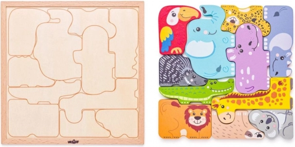 Šī koka puzle ar eksotiskiem dzīvniekiem ir perfekta pirmā mīkla pašiem mazākajiem. Lieli, krāsaini gabaliņi ir viegli satverami un palīdz bērniem trenēt sīko motoriku, koordināciju un loģisko domāšanu. Katram gabaliņam ir spilgtas krāsas un draudzīgs dizains, kas veicina vizuālo uztveri un formu atpazīšanu.