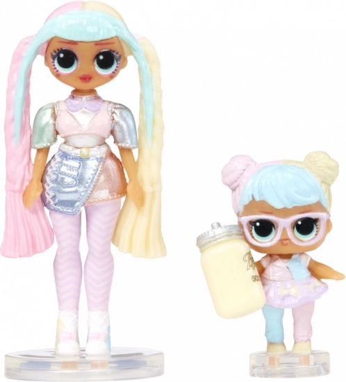 Mini OMG lelle apm. 5 cm un mazākā mini lelle apm. 3 cm izceļas ar precīziem matu sakārtojumiem, tērpiem un aksesuāriem stilīgai spēlei.