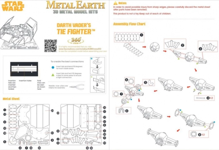 Iepakojumā iekļautas divas tērauda loksnes ar detaļām un salikšanas instrukcija. Instrumenti nav iekļauti.