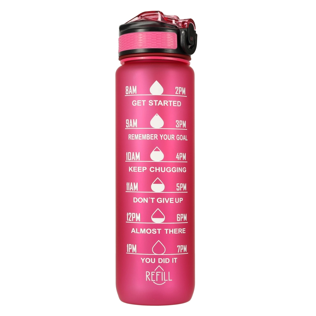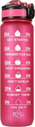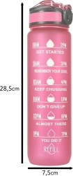 Sānos atradīsiet laika atzīmes no rīta līdz vakaram ar motivējošiem uzrakstiem, kas palīdzēs regulāri uzņemt šķidrumu. 1 litra tilpums ir ideāls visai dienai mājās, birojā un sporta zālē.