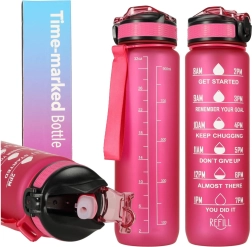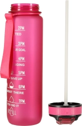 Stilīga 1 litra pudele no izturīga Tritan ar praktisku salmiņu un laika atzīmēm palīdzēs uzturēt dzeršanas režīmu visas dienas garumā. Pateicoties motivējošām atzīmēm pie katras stundas, vāciņam ar atvēršanas drošības slēdzi un vieglam, BPA nesaturošam materiālam, tā ir ideāli piemērota darbam, sportam un ceļojumiem.