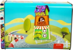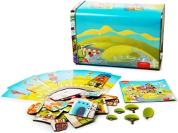 Komplektā ir 10 papīra paraugi, pēc kuriem var uzbūvēt mājiņas. Cietā kartona magnētiskos gabaliņus ar spīdīgu pārklājumu var viegli notīrīt ar mitru drāniņu. Ražots no videi draudzīga koka un paredzēts bērniem no 3 gadu vecuma. Ražots Eiropā.