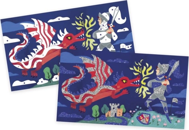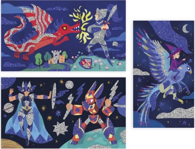 Janod piedāvā aizraujošu un izglītojošu nodarbi bērniem no 6 gadu vecuma. Komplektā ietilpst trīs krāsaini attēli, kurus bērni var dekorēt ar divām dažādām smilšu un spīdumu krāsām. Ar lāpstiņas palīdzību vienkārši noņemiet lipīgās daļas un vienmērīgi uzkaisiet skaistos spīdumus uz attēliem. Viena jautra attēla pabeigšana aizņem tikai 30 minūtes.