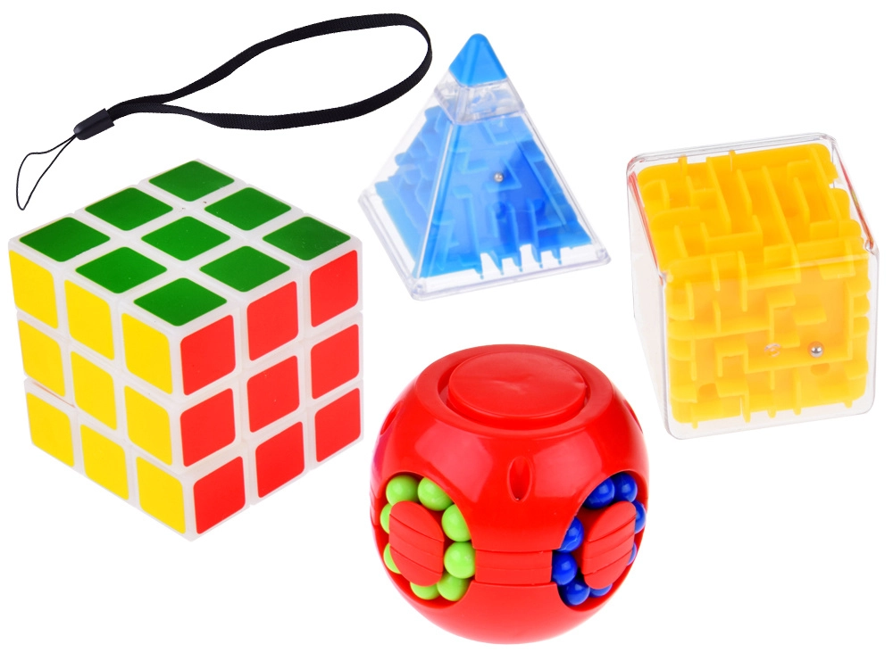 Komplektā ir četras unikālas rotaļlietas, kas uzlabo koncentrēšanos un roku motoriskās prasmes. Ideāli piemērots relaksācijai un loģiskās domāšanas treniņam.