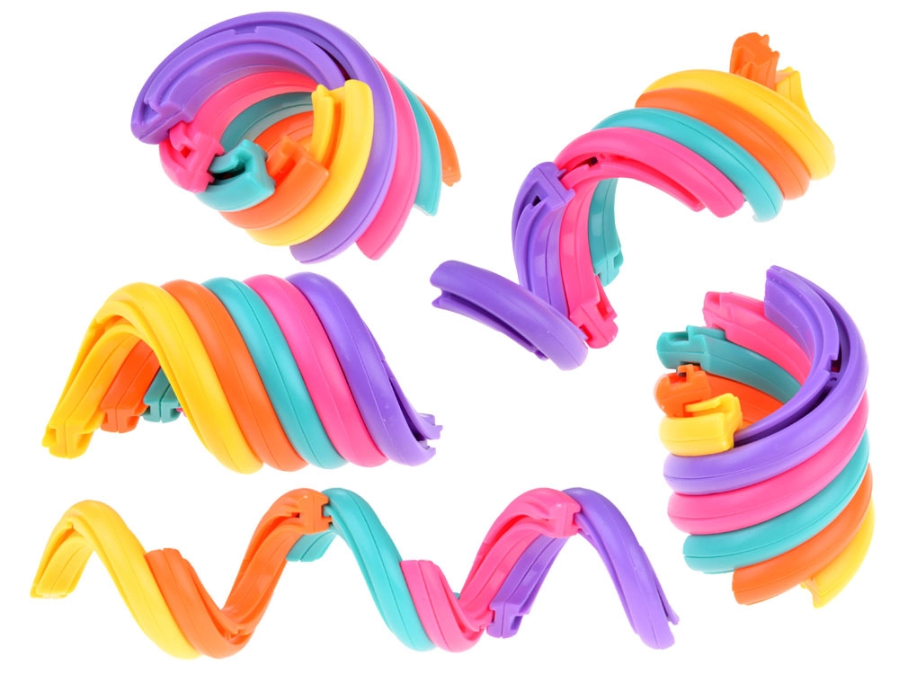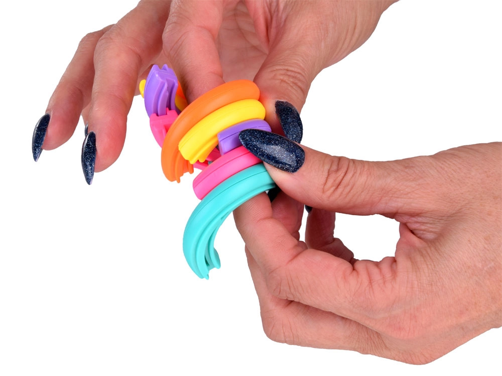 Šī maģiskā varavīksnes spirāle no izturīgiem plastmasas gredzeniem plūstoši slīd bezgalībā. Vienkāršas, atkārtotas kustības veicina nomierināšanos, stresa mazināšanu un labāku koncentrēšanos mācībās, darbā un gaidot rindā. Pateicoties kompaktajam izmēram, tā ietilpst kabatā vai mugursomā un vienmēr ir pa rokai.