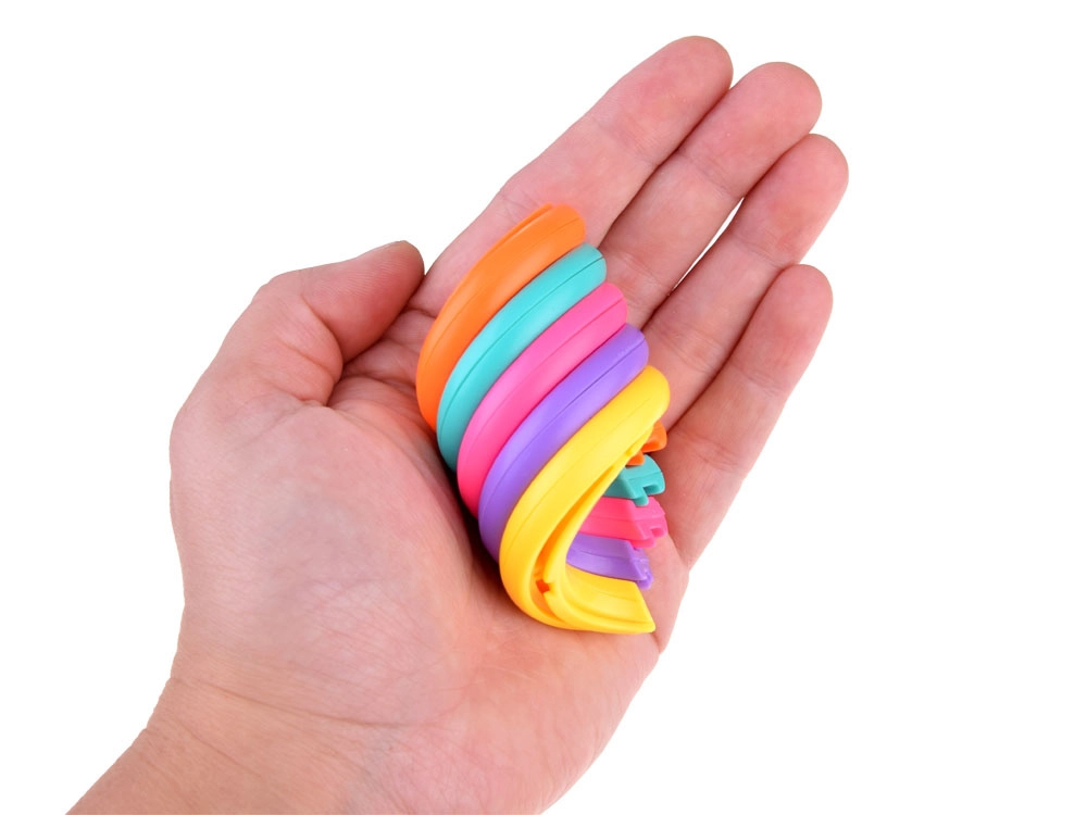 Priecīgās varavīksnes krāsas piesaista uzmanību un aicina rotaļāties, padarot to par lielisku sensoro un fidget rotaļlietu gan bērniem, gan pieaugušajiem. Spirāle ir iepakota glītā iepakojumā – ideāla kā neliela dāvana jebkurai situācijai.